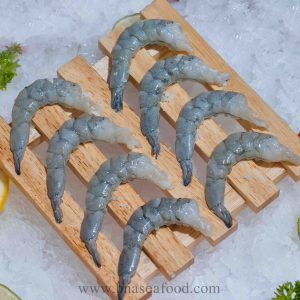 Tôm tươi, bỏ đầu, phân cỡ, lột vỏ (để lại đốt đuôi), xẻ lưng chia thân tôm thành 2 phần (giữ lại phần bụng để nối 2 phần với nhau), cấp đông. Sản phẩm có hình cánh bướm đẹp mắt, thường được dùng để chế biến các món ăn cầu kỳ trong các bữa tiệc, nhà hàng mà không mất thời gian vào việc sơ chế (Tôm tẩm bột tempura, xào rau củ, nấu canh…)